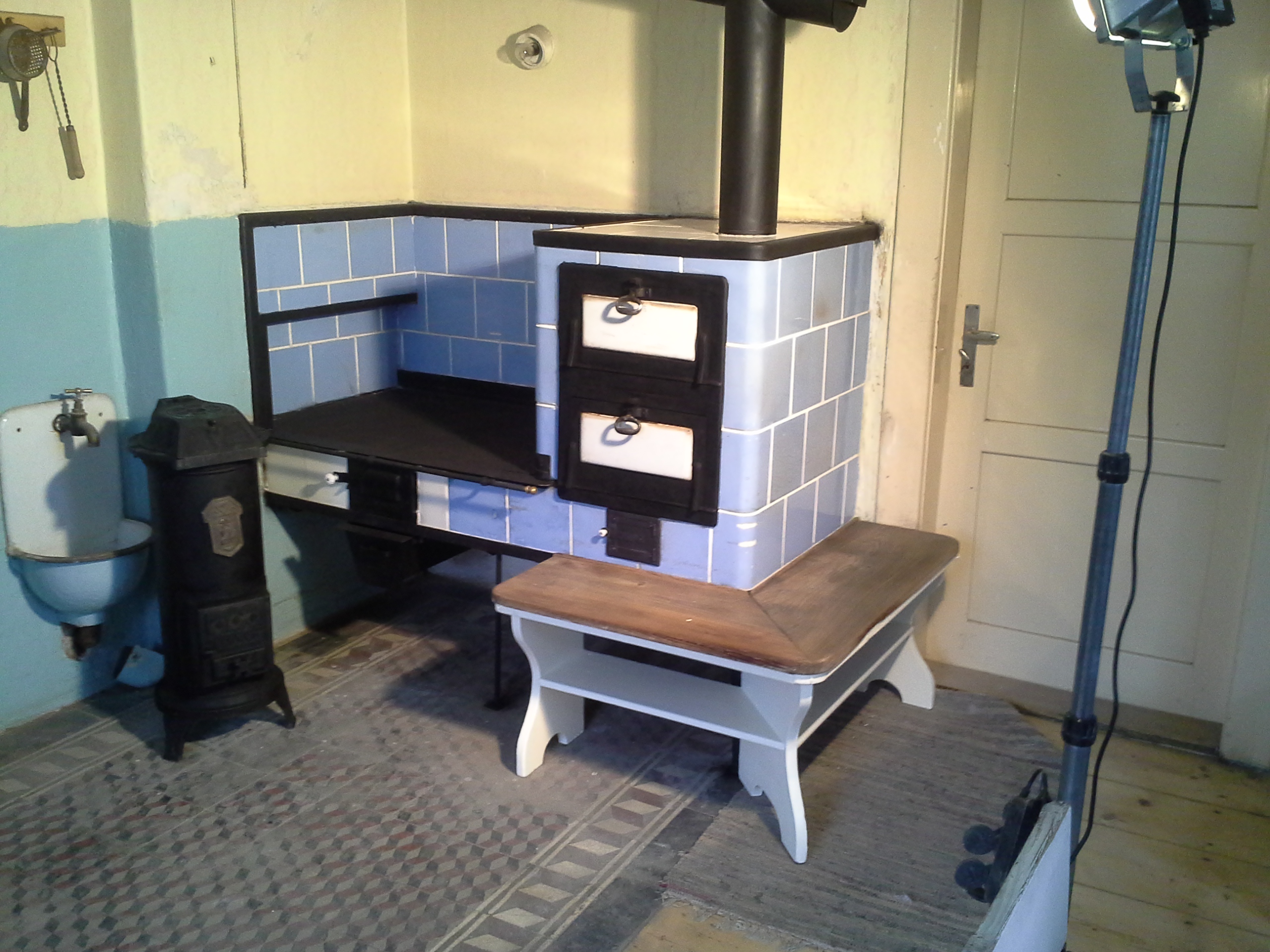 » Kachlový sporák se sedátkem po opravě